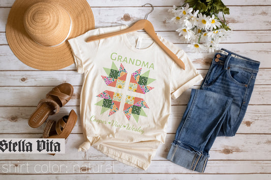 Custom Quilt Block T-Shirt for Grandma Personalized With Grandchildren's Names