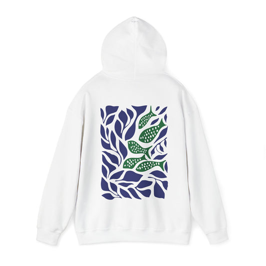 Matisse-Inspired Fish and Plants Hoodie - Bold Coastal Graphic Sweatshirt