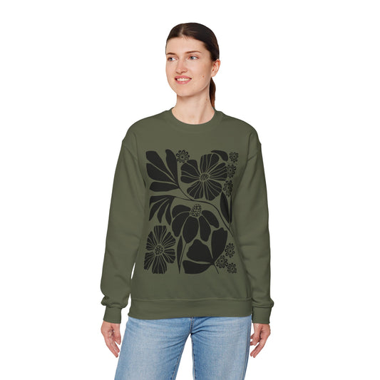 Monochromatic Black Wildflower Sweatshirt - Womens Graphic Sweatshirt