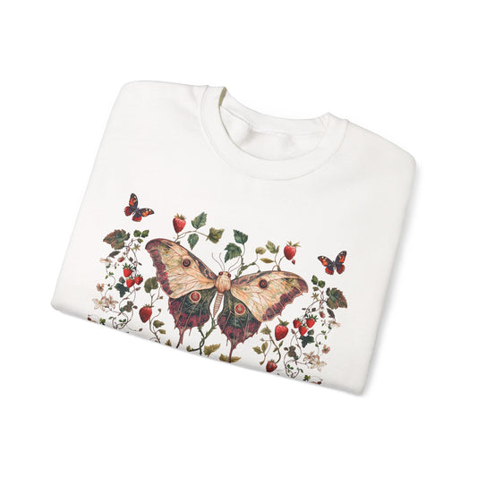 Strawberry Vines and Moth Sweatshirt - Moth Graphic Shirt for Women