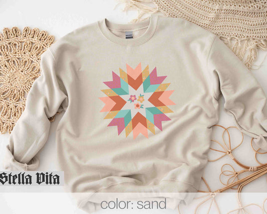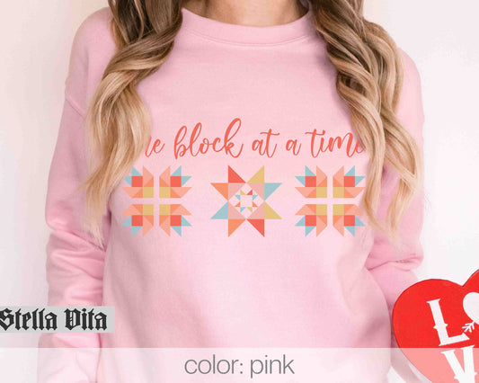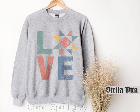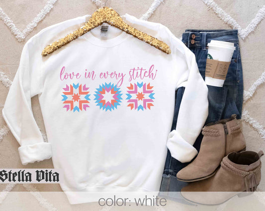 Love in Every Stitch Colorful Quilt Block Sweatshirt