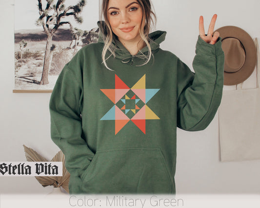 Evening Star Morning Star Quilt Block Hoodie Sweatshirt
