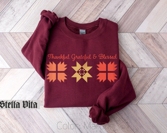 Grateful Thankful and Blessed Quilt Block Sweatshirt