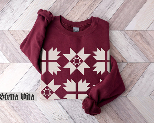 Monochromatic Maximalista Design Cottage Core Quilting Sweatshirt
