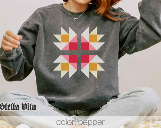 Christmas Colors Quilt Block Comfort Colors Sweatshirt