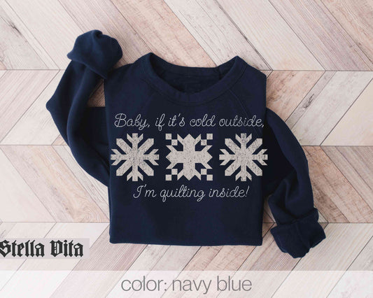 Baby If It's Cold Outside I am Quilting Inside Snowflake Quilt Block Distressed Sweatshirt