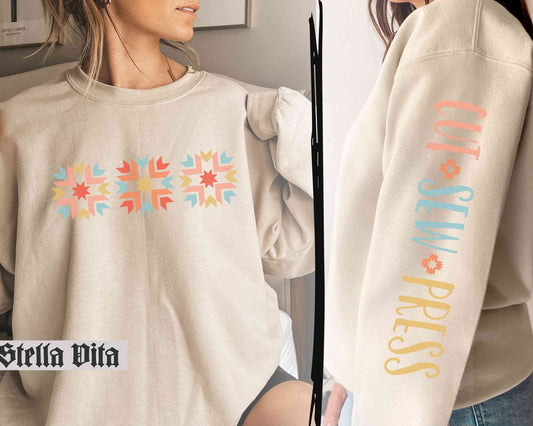 Quilt Block Sweatshirt With Cut Sew Press Arm Print