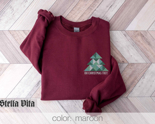 Oh Christmas Tree Small Pocket Design Quilt Block Sweatshirt