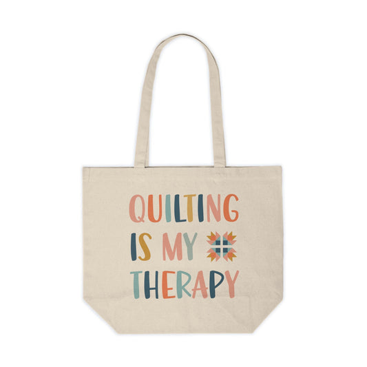 Quilting Is My Therapy Funny Quilt Block Canvas Tote Bag