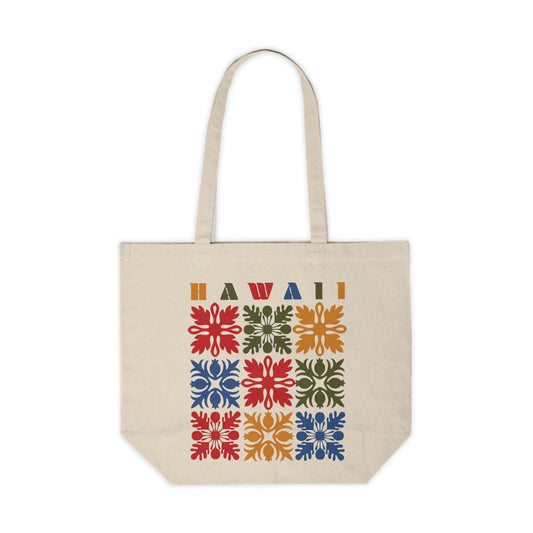 Hawaii Quilt Block Brightly Colored Canvas Tote Bag