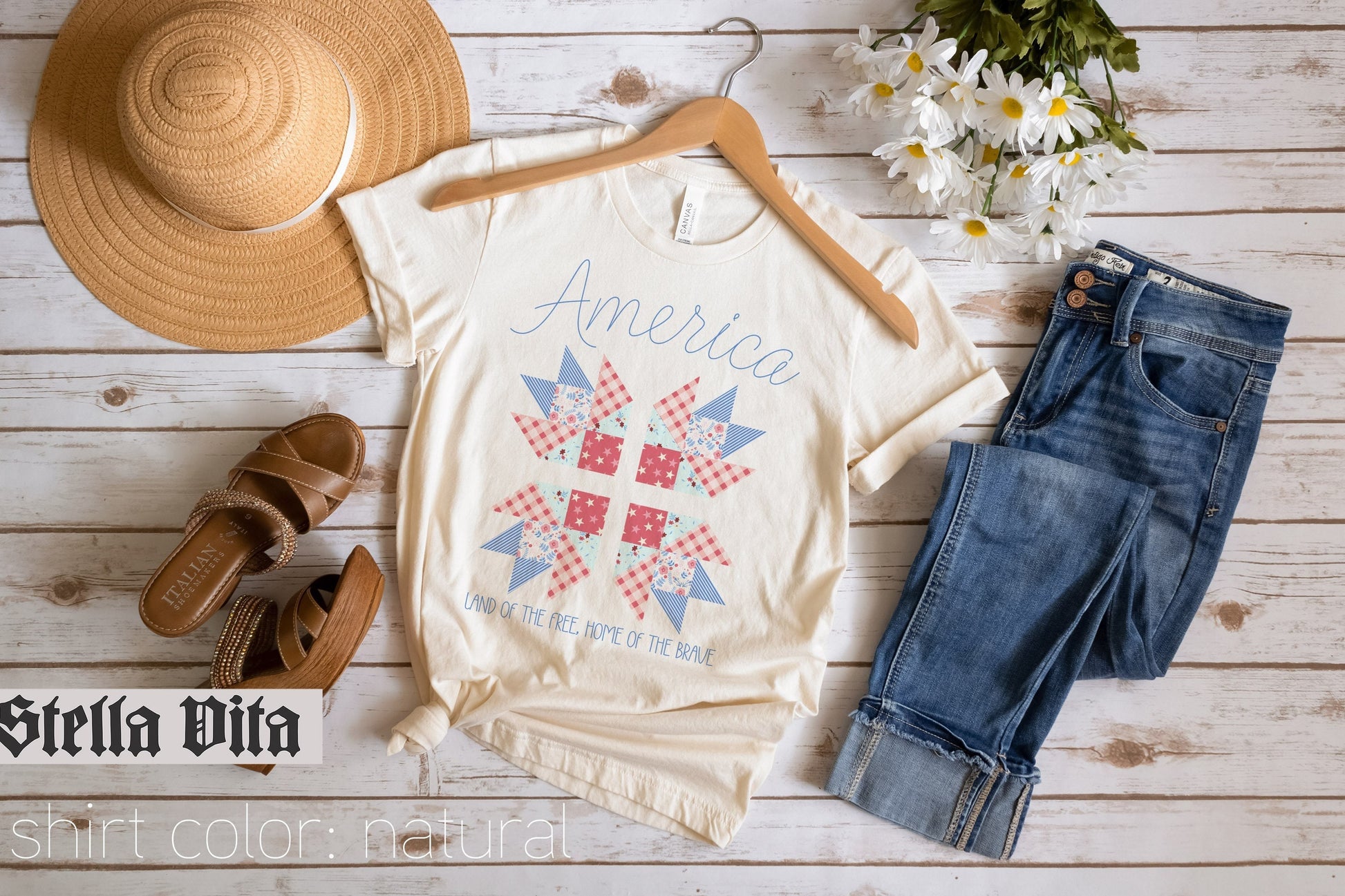 Not only is this tee perfect for showing your country pride, it's also a great addition to a quilter's wardrobe or a cottage core look. The image of the patriotic quilt block adds a touch of handmade charm to any outfit. And with the soft, breathable fabric and comfortable fit, you'll want to wear it all year round.