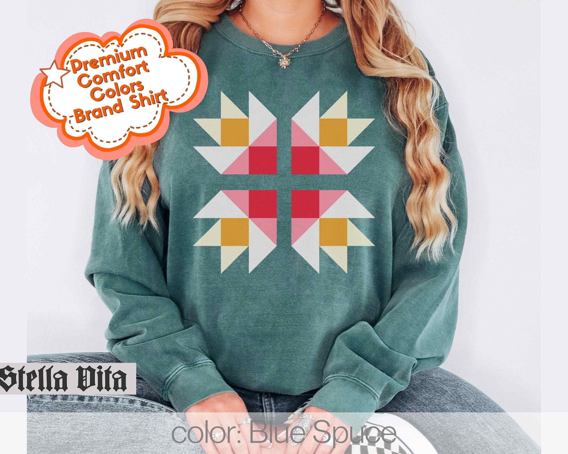 But this sweatshirt isn't just for the holidays. Its cottage core quilt design and minimalist aesthetic make it a versatile and trendy addition to your wardrobe all year round. So go ahead, treat yourself or your loved ones to this must-have holiday essential.
