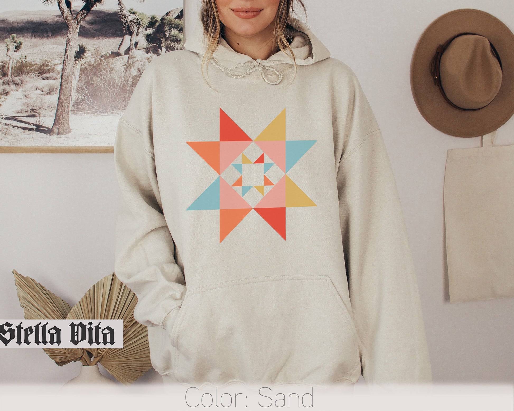 Evening Star Morning Star Quilt Block Hoodie Sweatshirt