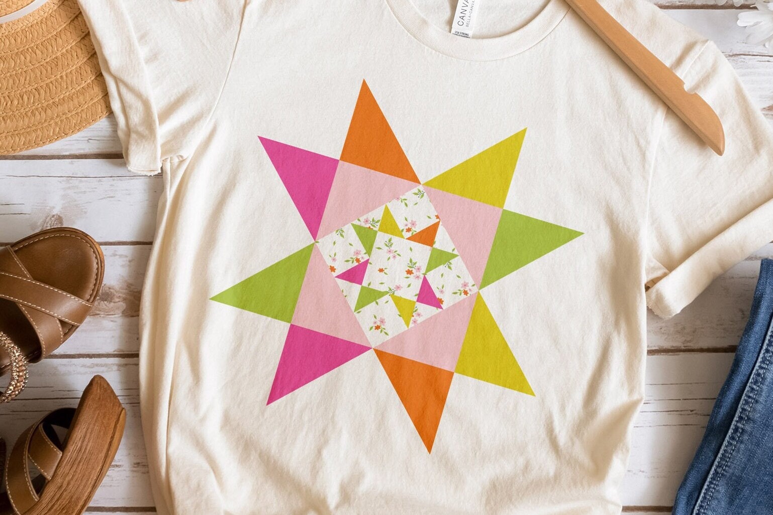 Morning Star Floral Print Quilt Block T-Shirt