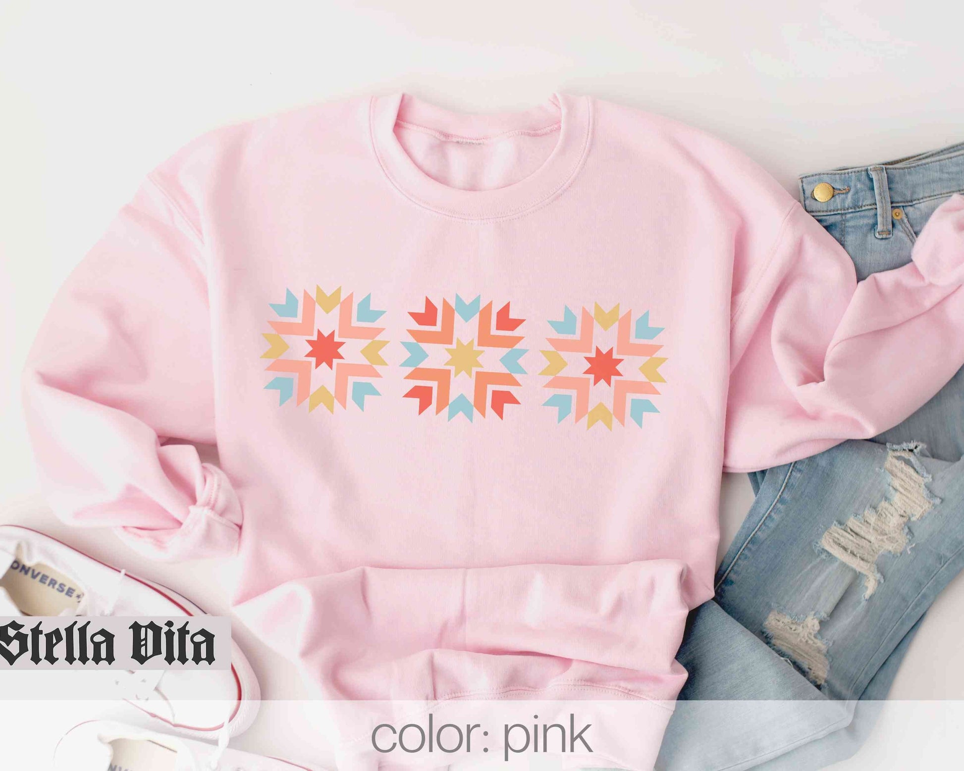 The quilt block design adds a touch of creativity and style, making it a great gift for any quilter in your life. With its cozy fit and stylish arm print, this sweatshirt is sure to become a staple in your wardrobe. Wear it to keep warm during chilly quilting sessions or simply to show off your passion for quilting. Don't miss out on this must-have item for any quilter.